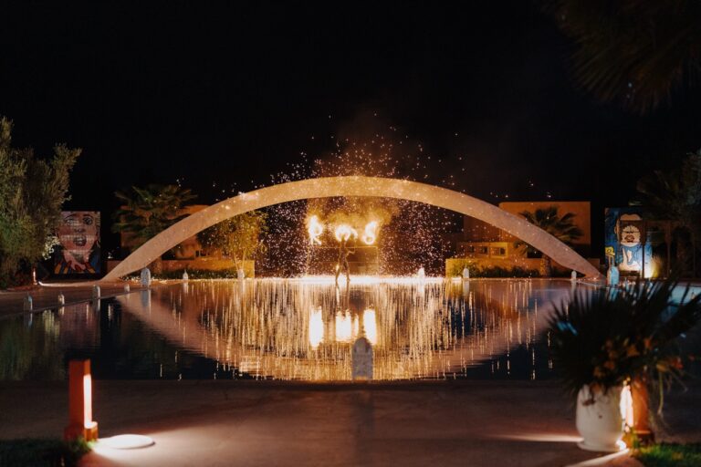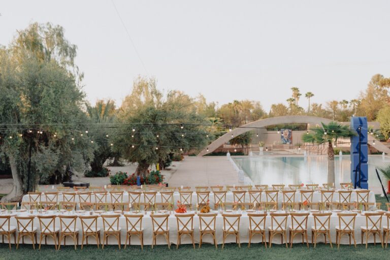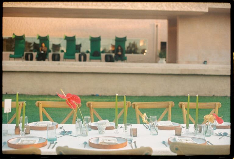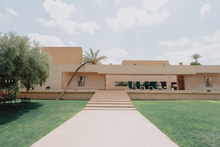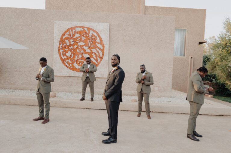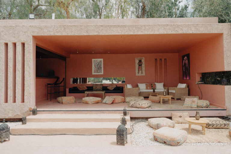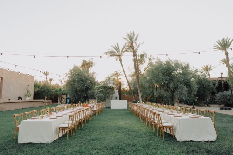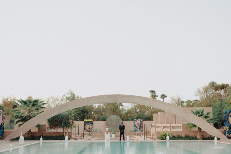 Nestled in the heart of the Palmeraie, Dar Sabra—a boutique art hotel known for its contemporary design and striking sculpture gardens—offered the ideal canvas for their destination celebration. The venue’s bold architecture and lush grounds provided a stunning contrast to the rich cultural elements woven throughout the weekend.