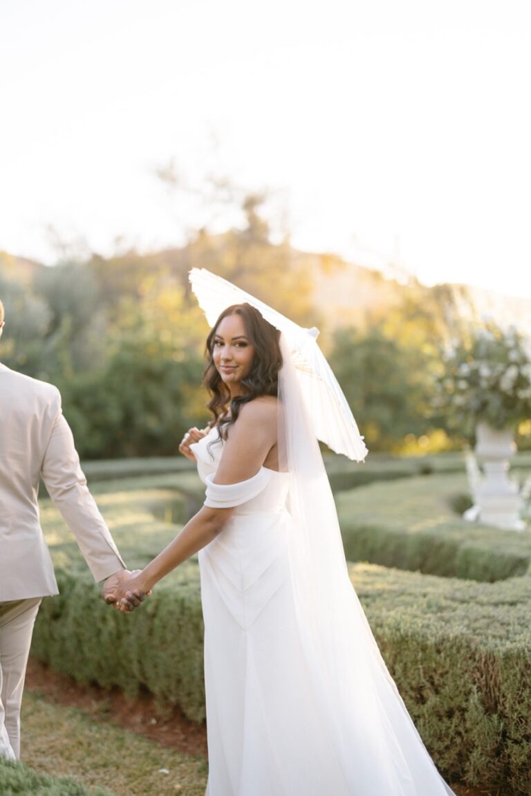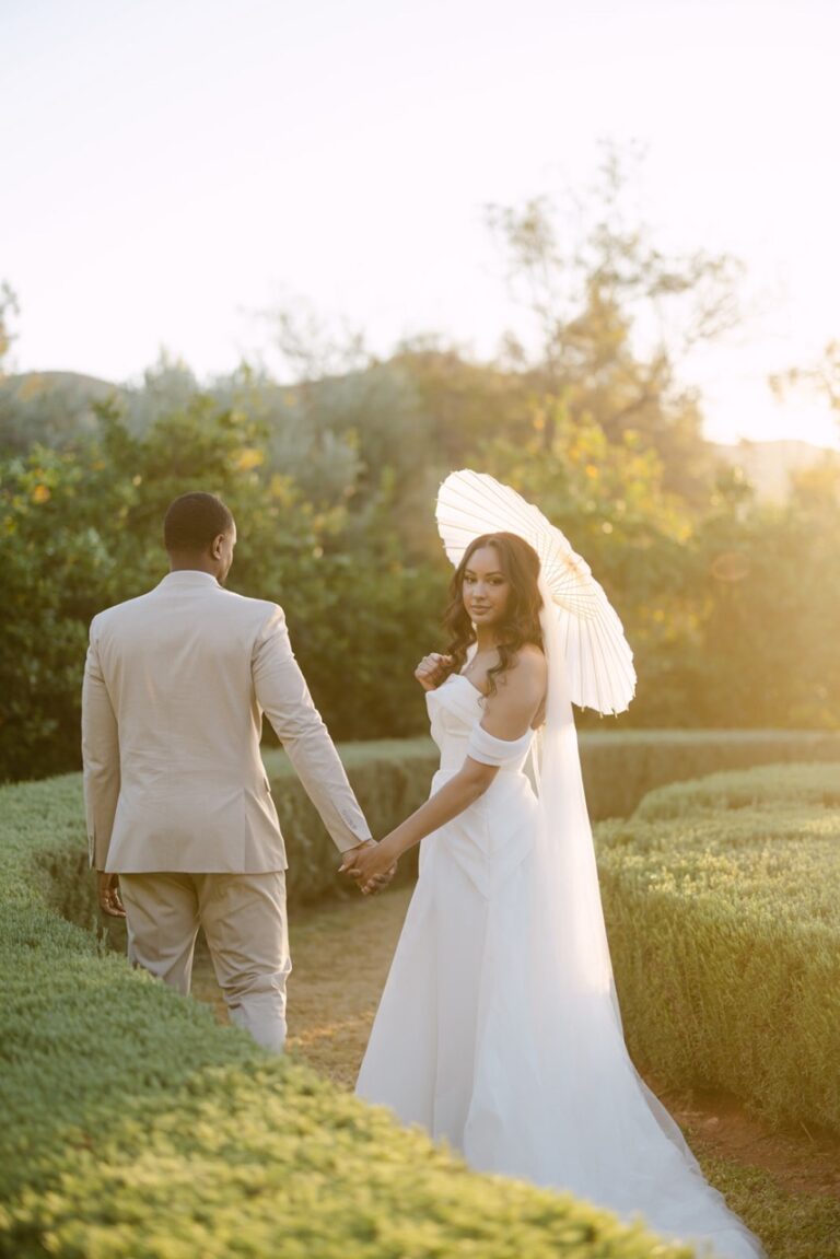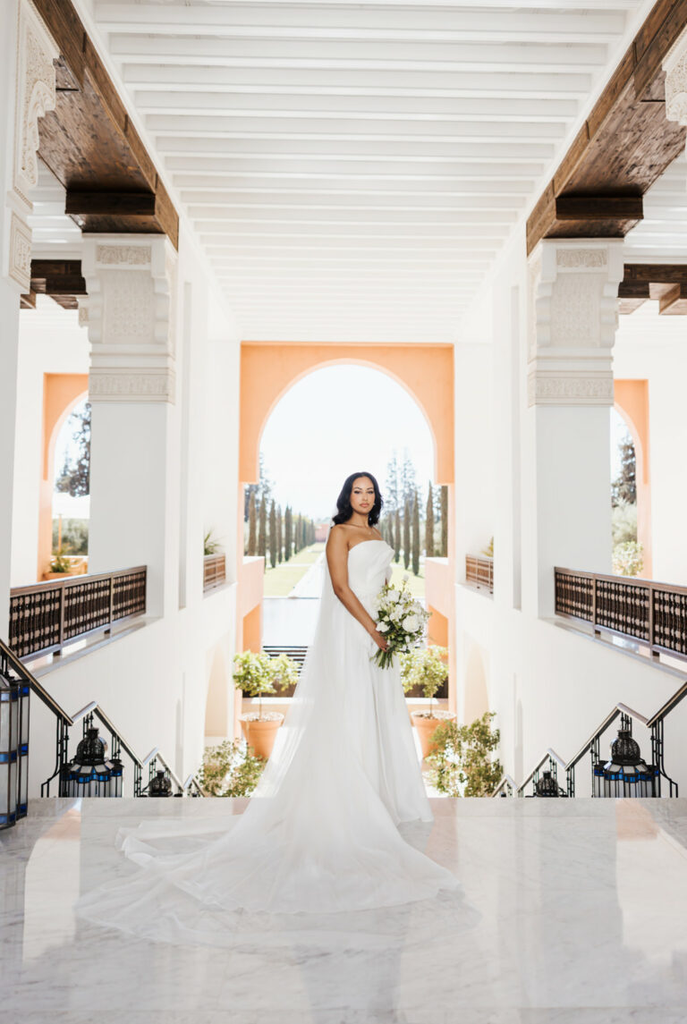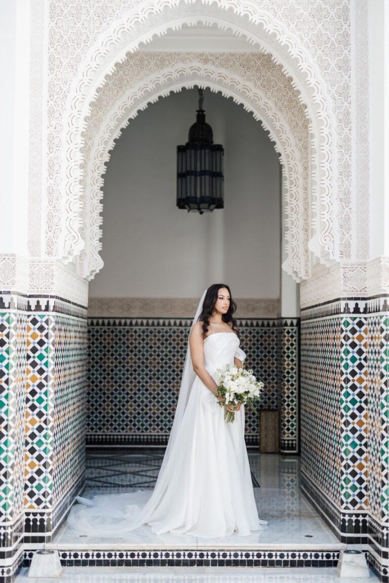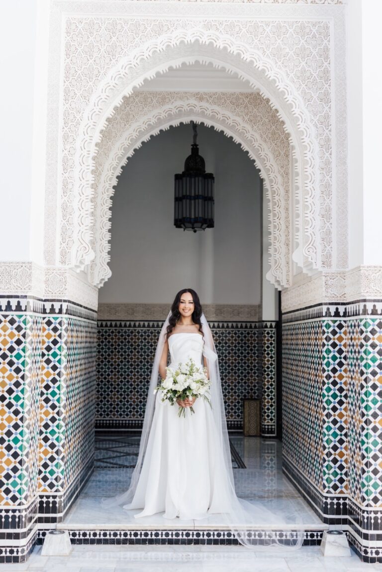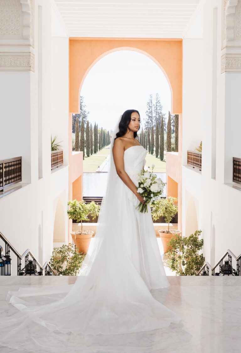 Their day began at the breathtaking Oberoi Marrakech, where they spent the morning getting ready. Photos were taken by Rebeccacarpenter photography amidst the serene, palatial gardens and intricate Moroccan architecture. Alexi prepared in a sun-drenched villa surrounded by olive groves. Their first look, framed by the iconic archways of the Oberoi, was emotional and full of joy — a perfect reflection of their journey together.