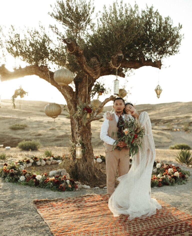 Both Nate and I love to travel. We usually do 3 or 4 international travels a year despite our busy work schedules. A destination wedding was definitely on our top list and we picked Marrakech, despite the difficulty with languages and the fact that we’d never been to Morocco! It was definitely a time-consuming job, but I enjoyed every moment of the year-long planning and design. Even when I was still awake at 3 am on a weekday checking Pinterest or drafting ideas to my partner in Marrakech! I would love to do it again and again. I really appreciate how things just naturally came together in Marrakech to create the boho and exotic feel.