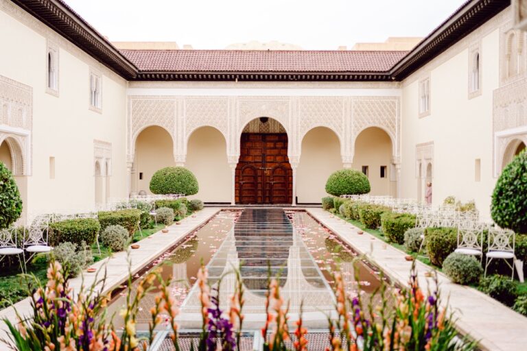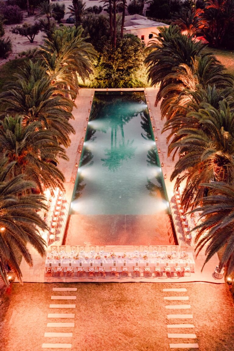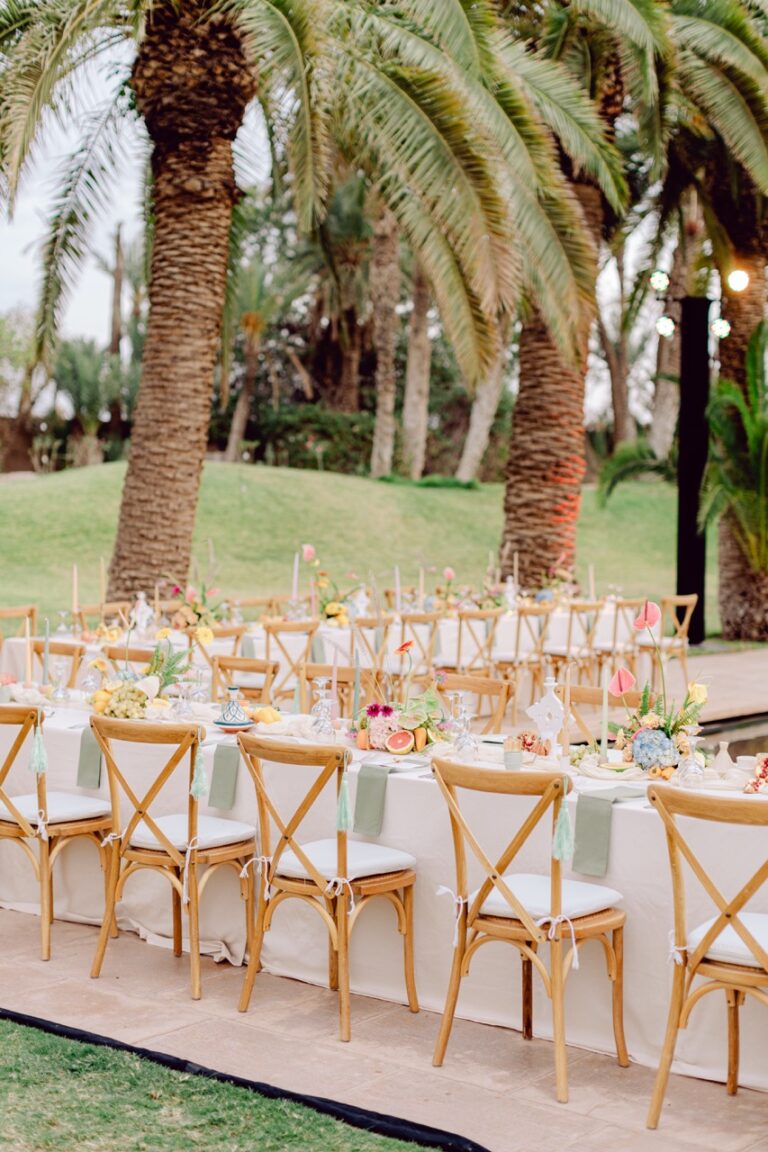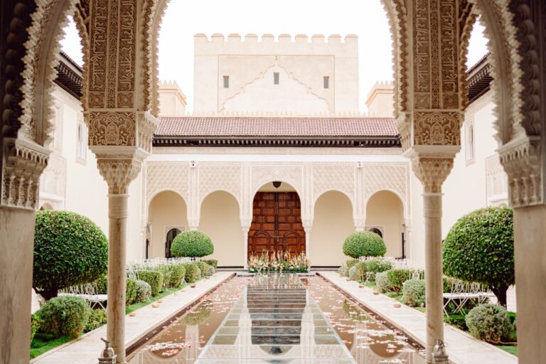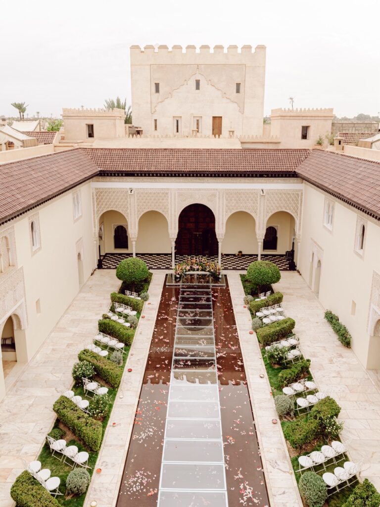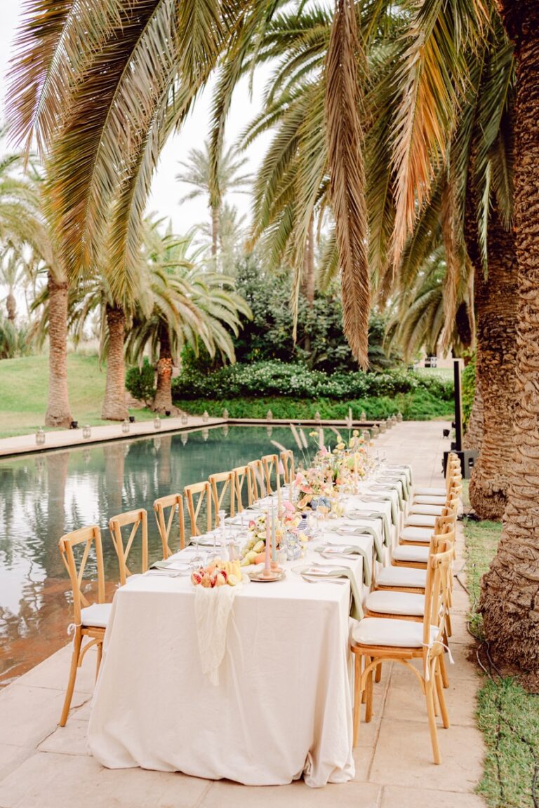 Ksar Char Bagh, a stunning Moroccan palace surrounded by lush gardens and serene courtyards, provided an idyllic venue for this special occasion. Known for its opulent yet intimate atmosphere, the venue perfectly complemented Nilai and Christie’s vision of a sophisticated celebration. The grandeur of the palace, paired with its tranquil ambiance, offered a dreamlike setting for their wedding day.
