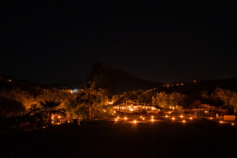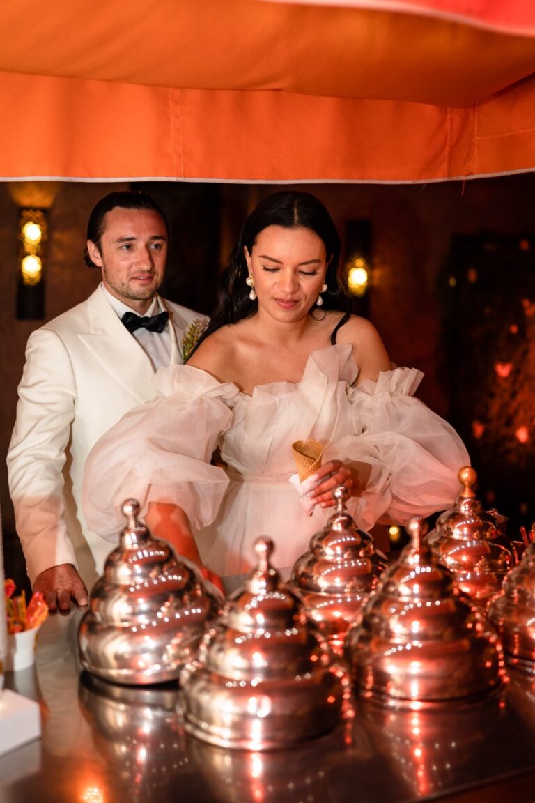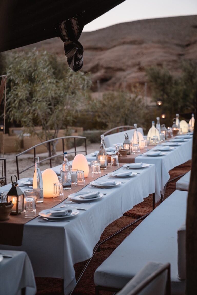 As the sun dipped below the horizon, Farah and Gabriel reveled in their newfound union, dancing under the starlit sky and savoring an intimate dinner within the shelter of a tented oasis, aglow with the flicker of candlelight and the allure of Moroccan-inspired decor.