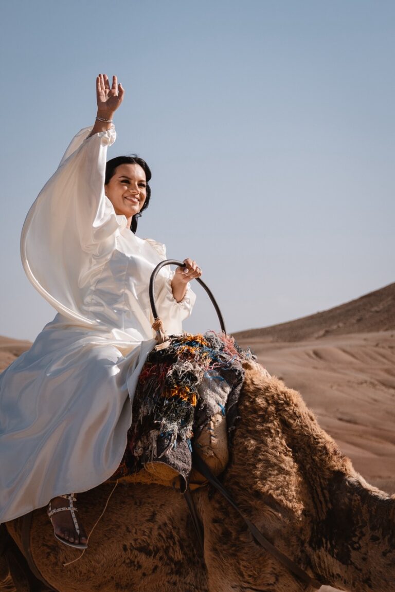 In honoring tradition, Farah and her entourage indulged in the artistry of Moroccan Henna, crafted by local artisans, setting the stage for a deeply cultural and meaningful ceremony. From camelback excursions to the enchanting melodies of local bands, every moment resonated with joy and jubilation, culminating in a heartfelt Muslim ceremony officiated by the bride's father against the panoramic canvas of the Agafay Desert.