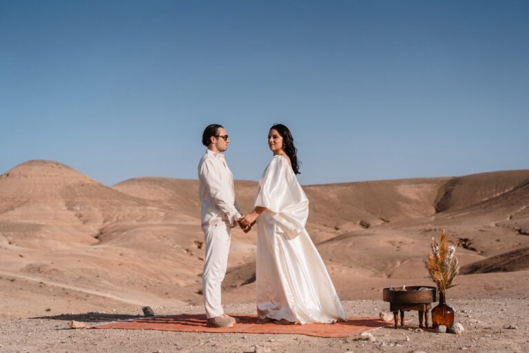 Crafting an extraordinary journey into the heart of Morocco's desert landscape of La Pause, Farah and Gabriel's union was a testament to love, sophistication, and adventure. Their chic and contemporary desert wedding was a fusion of culture, luxury, and personal flair, meticulously designed to create an unforgettable experience for all.