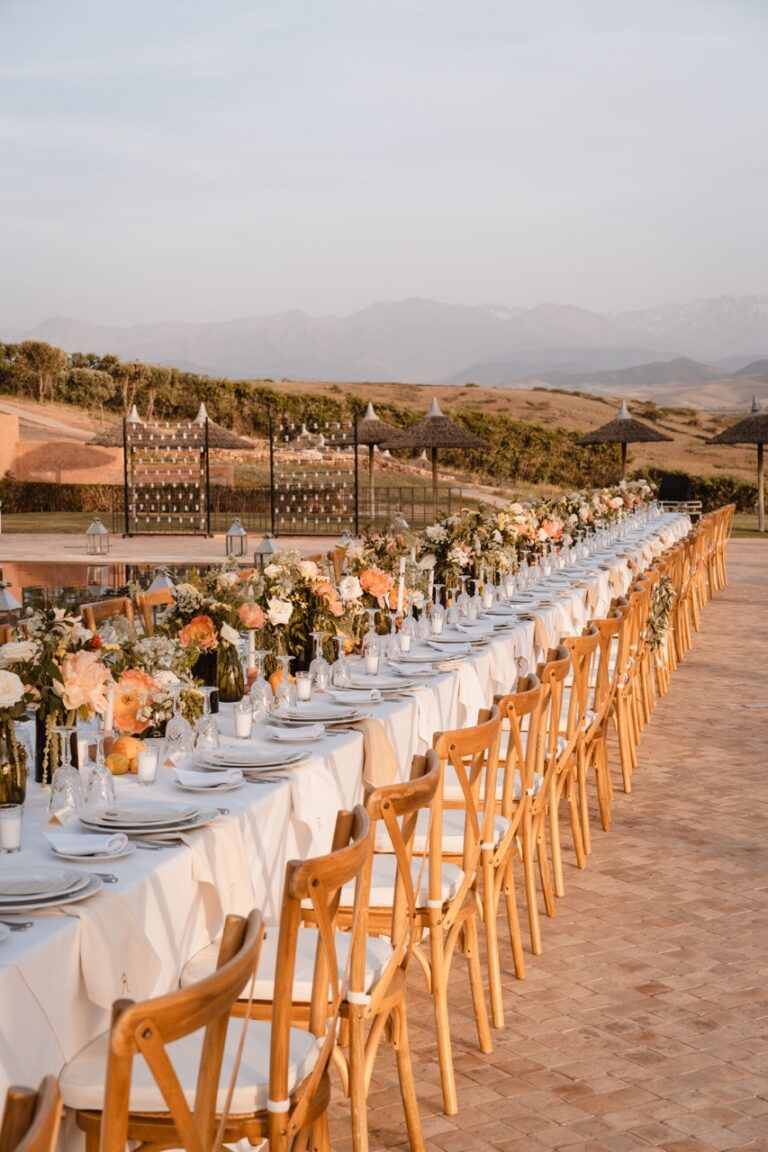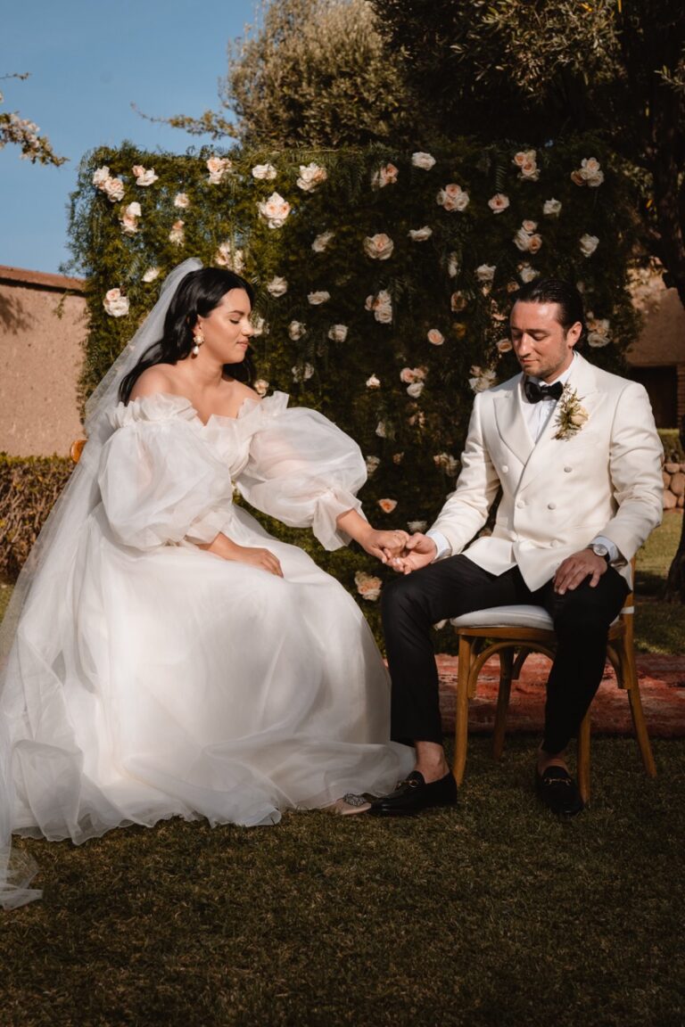 Day 2 - A White Wedding Amidst Marrakech's Splendor Transitioning to the second day of festivities, Farah and Gabriel's celebration unfolded against the backdrop of Marrakech's luxurious Palais Paysan. Here, amidst verdant gardens and majestic Atlas vistas, the couple exchanged vows in a ceremony infused with Moroccan elegance and romantic allure.