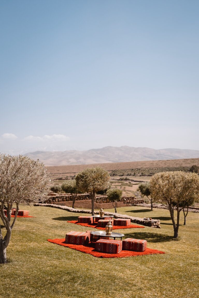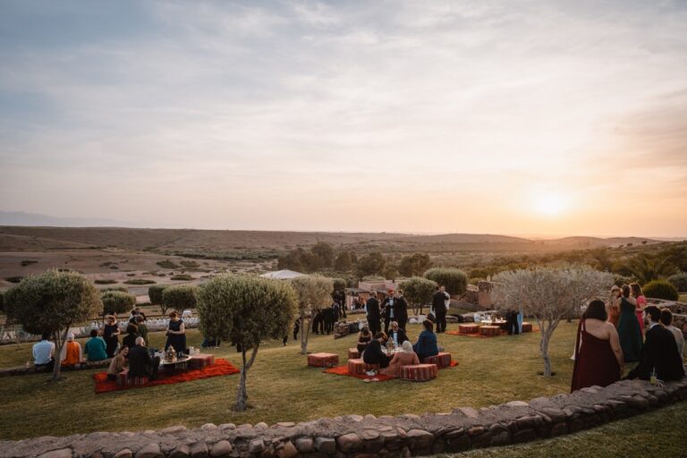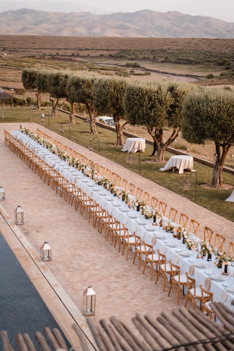 Day 1 - Agafay Desert Camp: A Majestic Welcome Kicking off their festivities at the Agafay Desert Camp, Farah and Gabriel extended a warm embrace to their guests amidst the enchanting backdrop of the desert. Here, amid the serene ambiance of an outdoor oasis, adorned with a glistening pool and captivating entertainment, guests were invited to immerse themselves in the splendor of their surroundings.