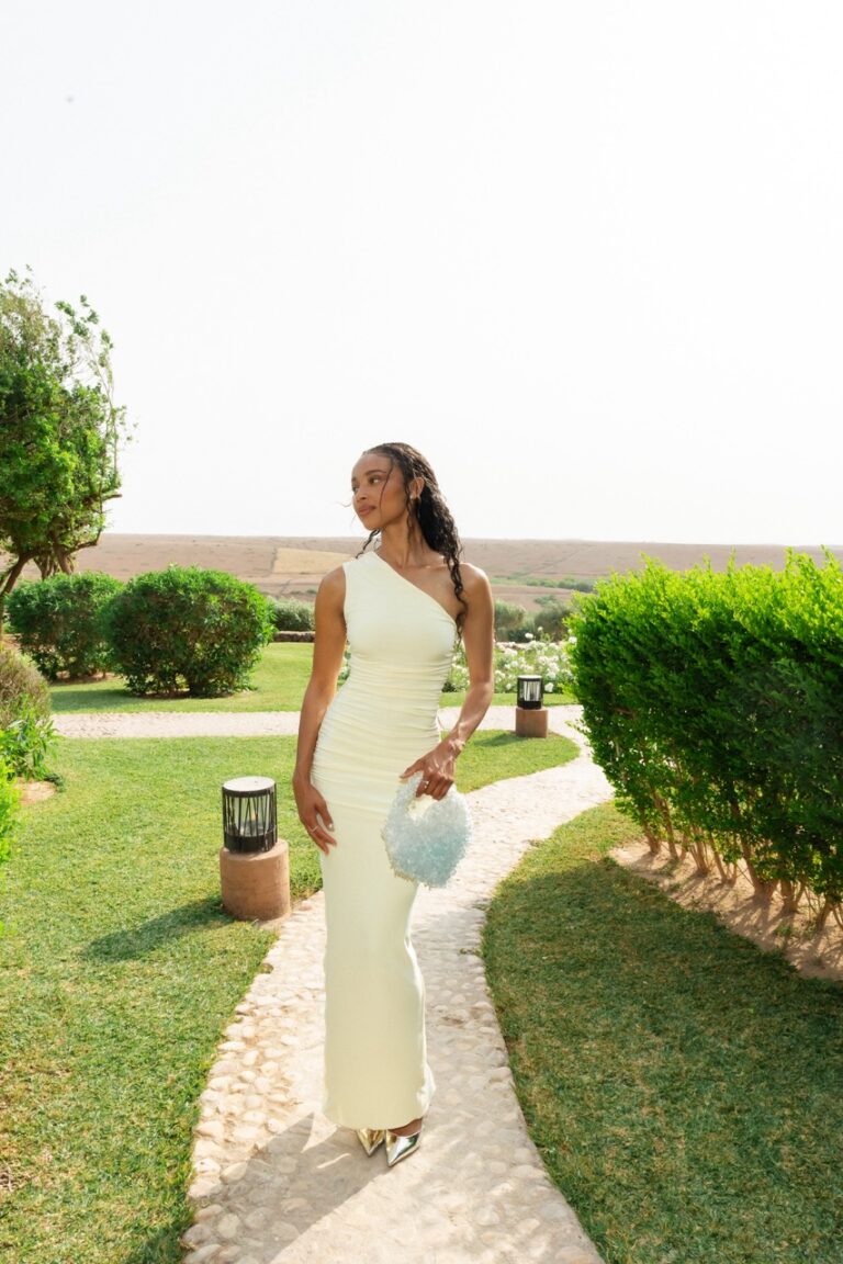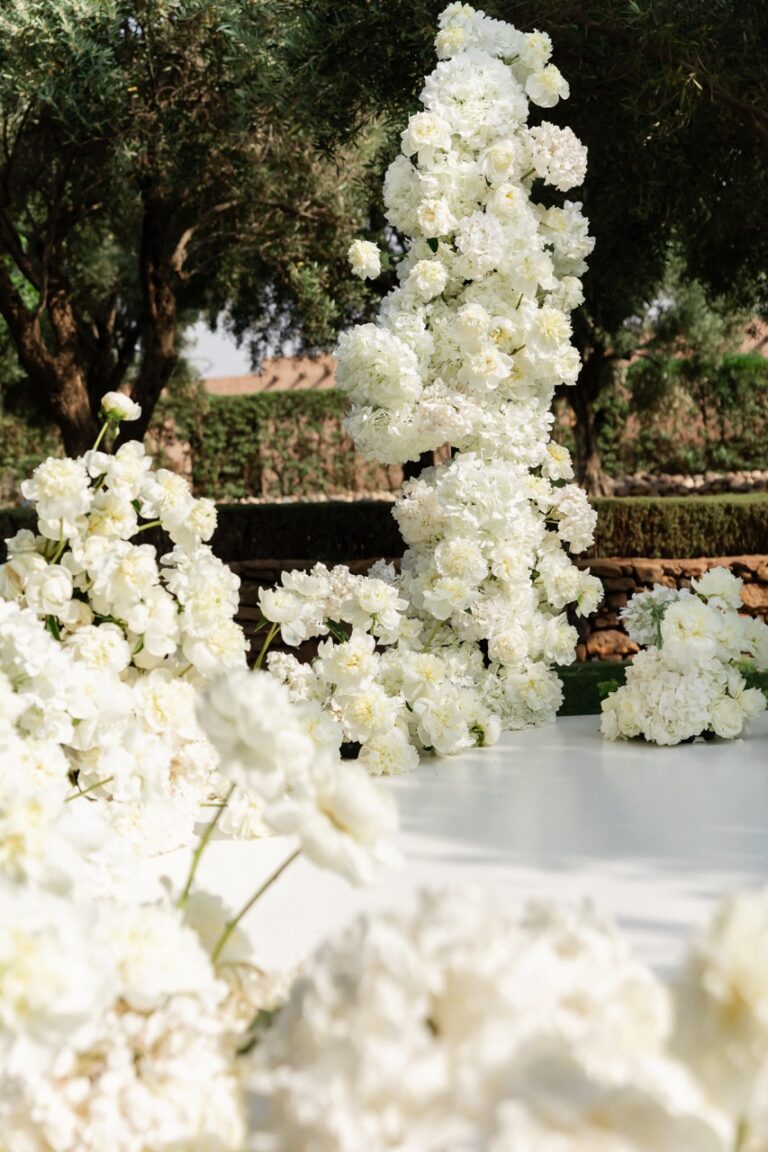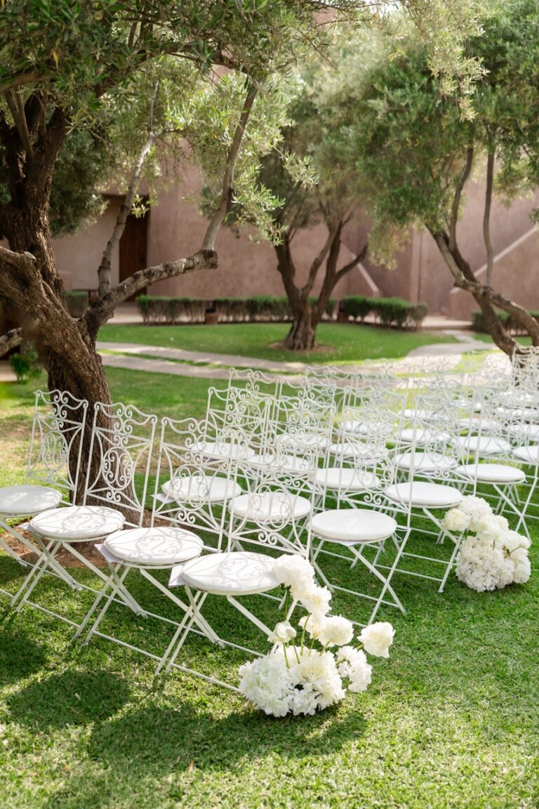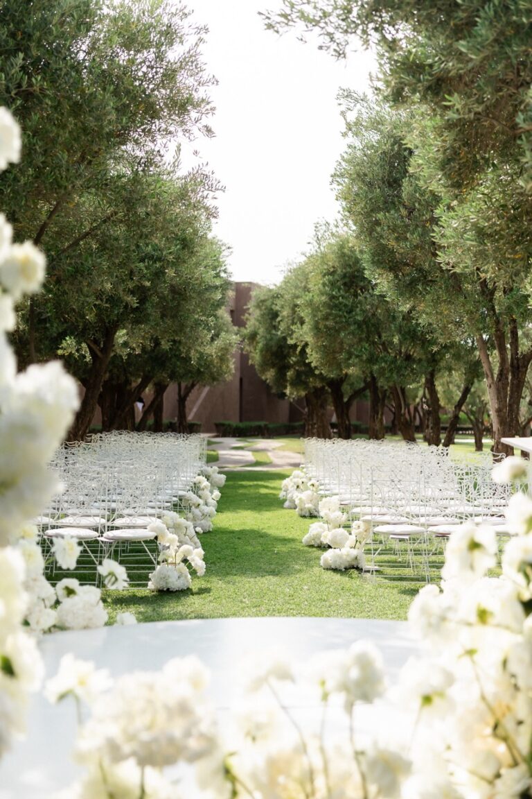 The second day took guests to the foothills of the Atlas Mountains, where Palais Paysan offered expansive views of olive groves, rolling fields, and the distant peaks. The theme for this day was "Lemon Garden Elegance", inspired by Mediterranean charm, using a fresh and romantic palette of light yellow and white, accented with lush greenery and golden touches.