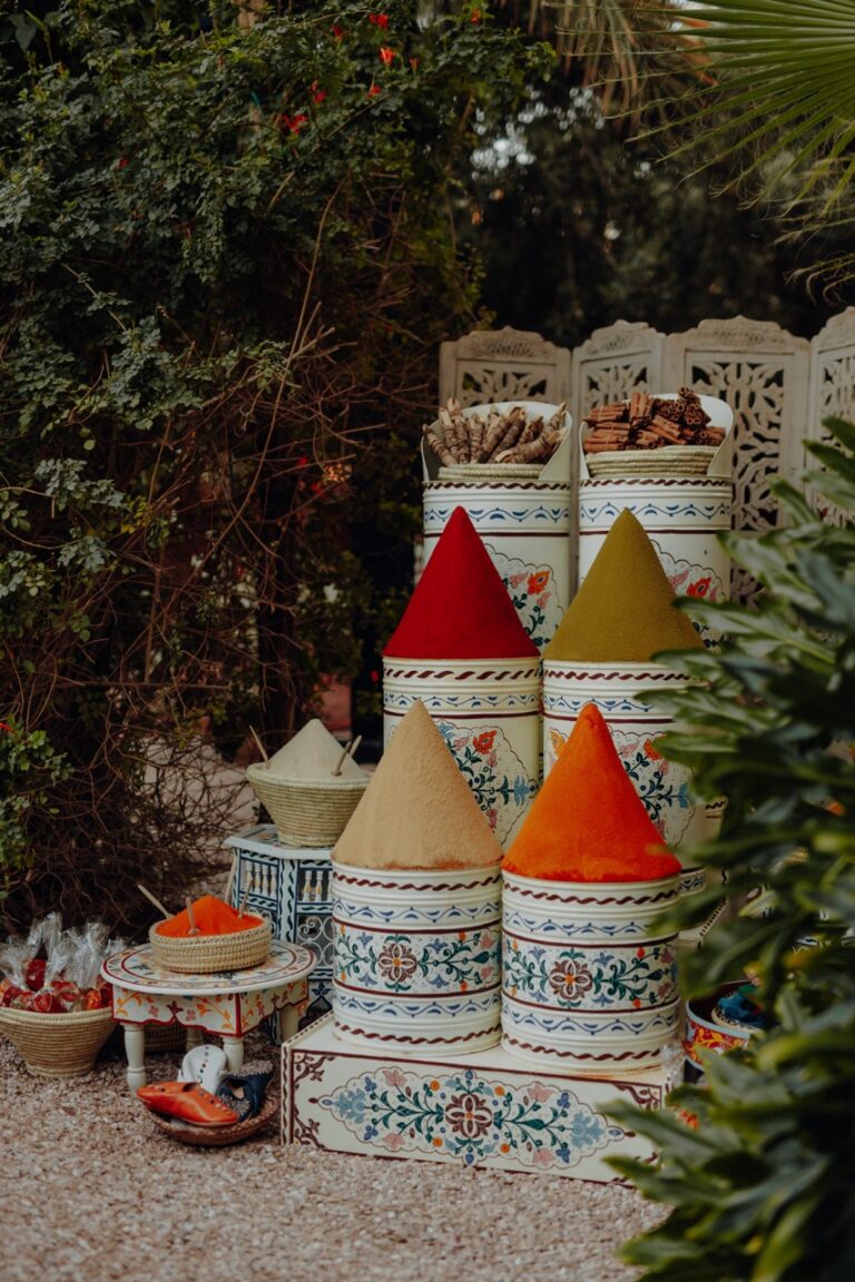 Rajae and Max ensured that their wedding felt deeply personal. Guests were gifted handmade Moroccan favors, including miniature bottles with moroccan spices sourced from the souk. A live calligrapher personalized each guest's place card in Arabic script, adding a unique cultural touch.